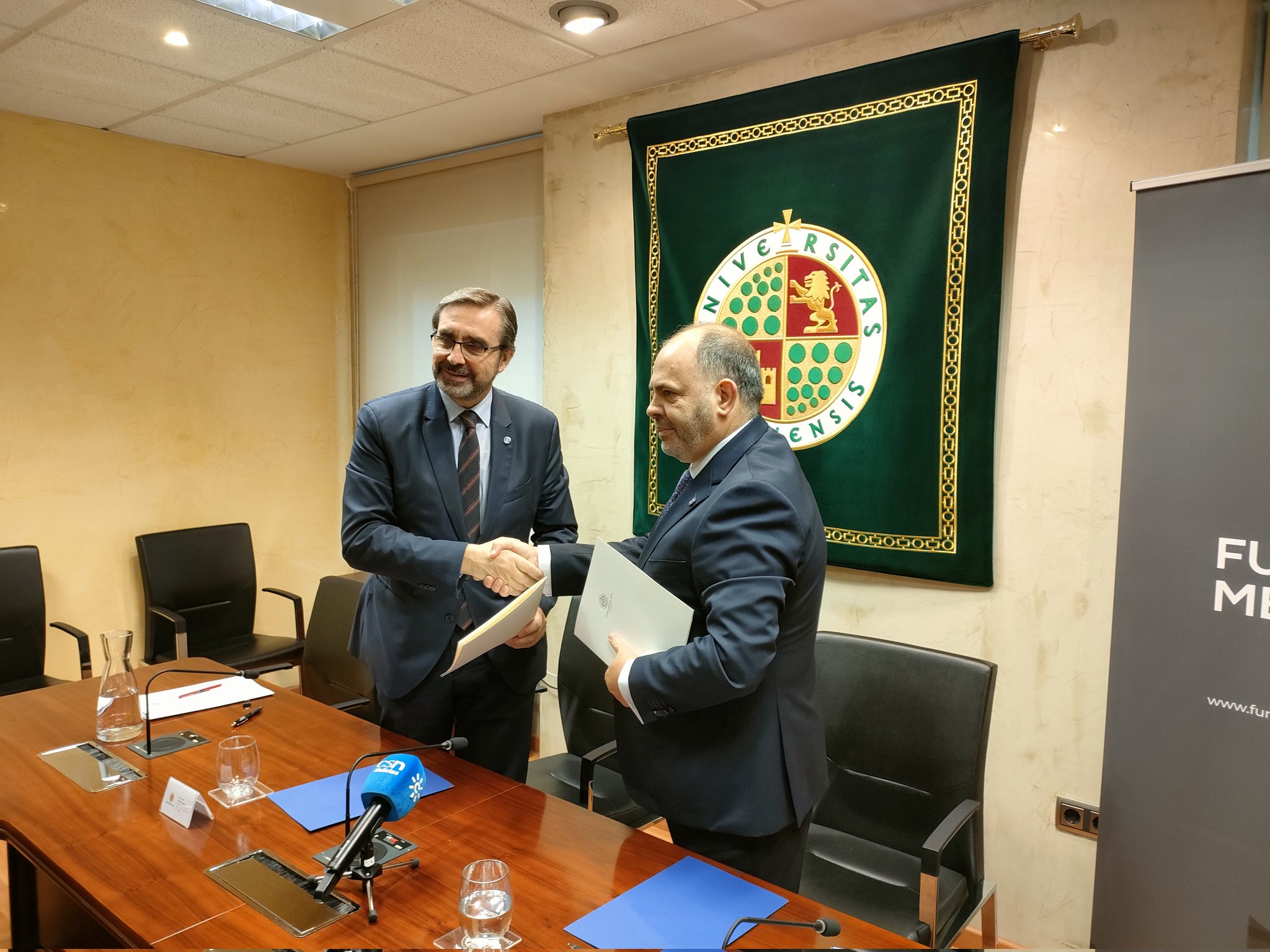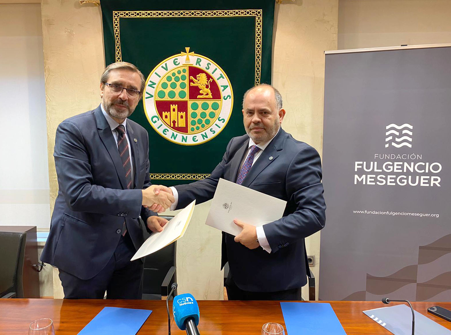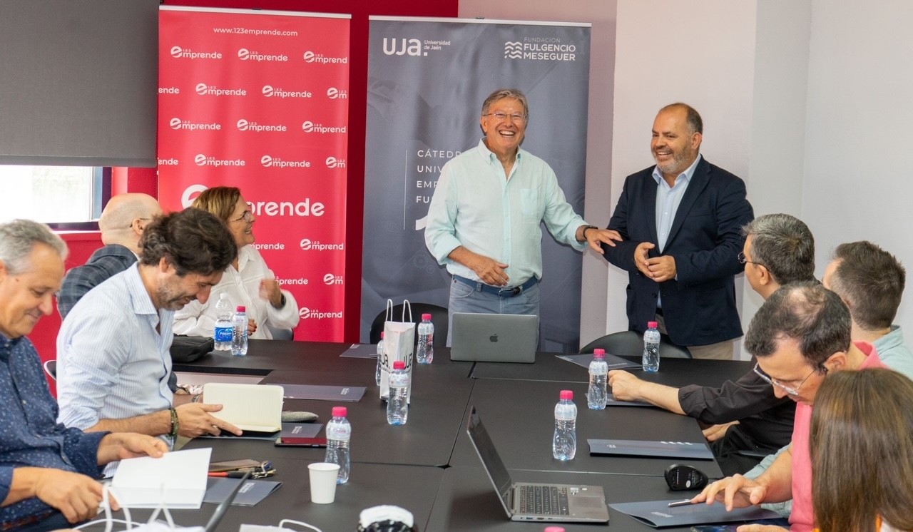El Rector de la Universidad de Jaén (UJA), Juan Gómez Ortega, y el presidente de la Fundación firman un convenio específico de colaboración para la creación de la Cátedra Universitaria de Emprendimiento ‘Fulgencio Meseguer’ de la UJA.
